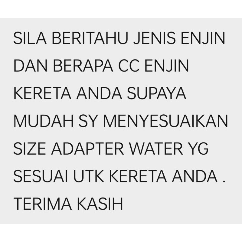 Berapa saiz adapter water temperature untuk kereta waka.